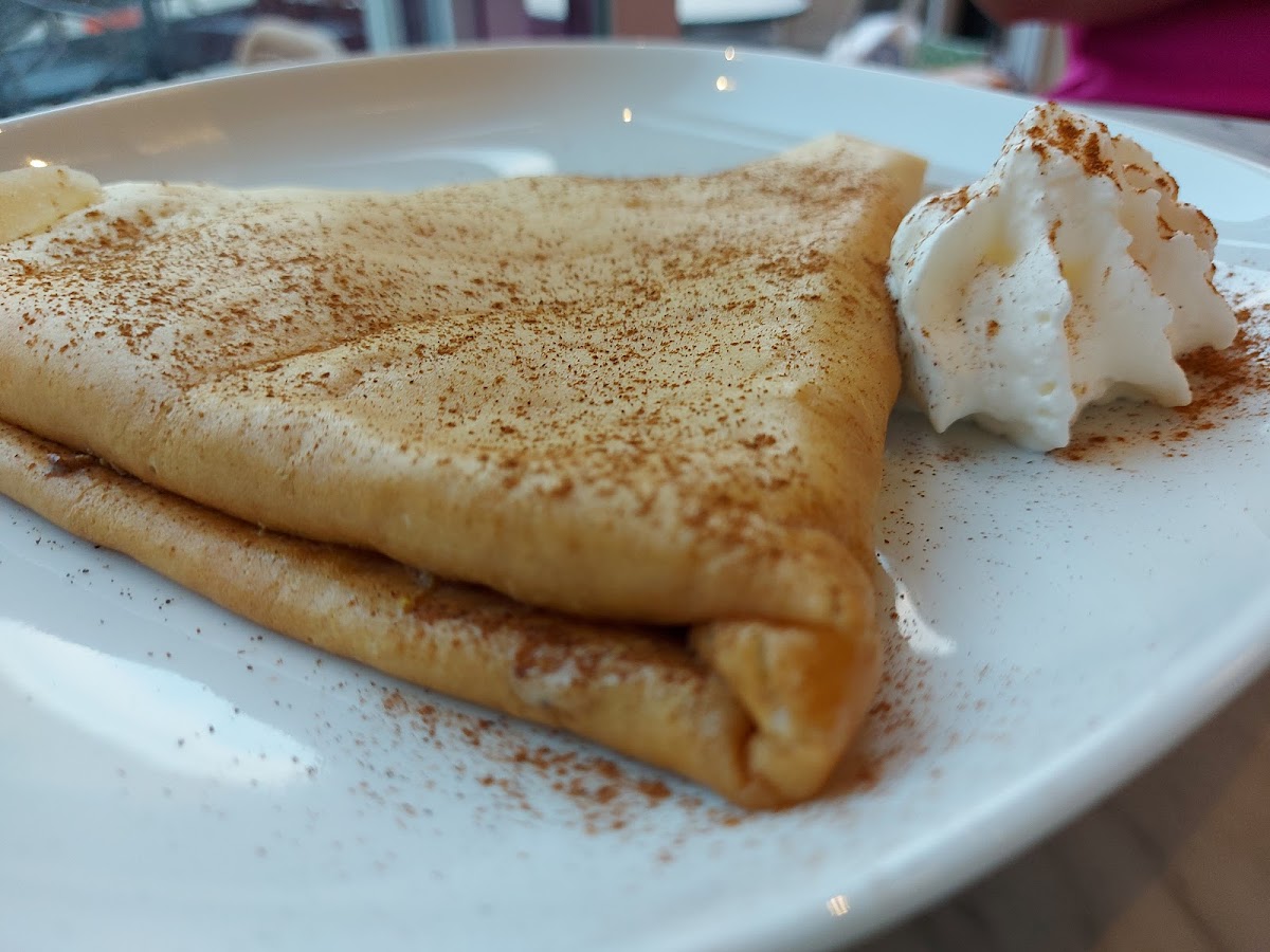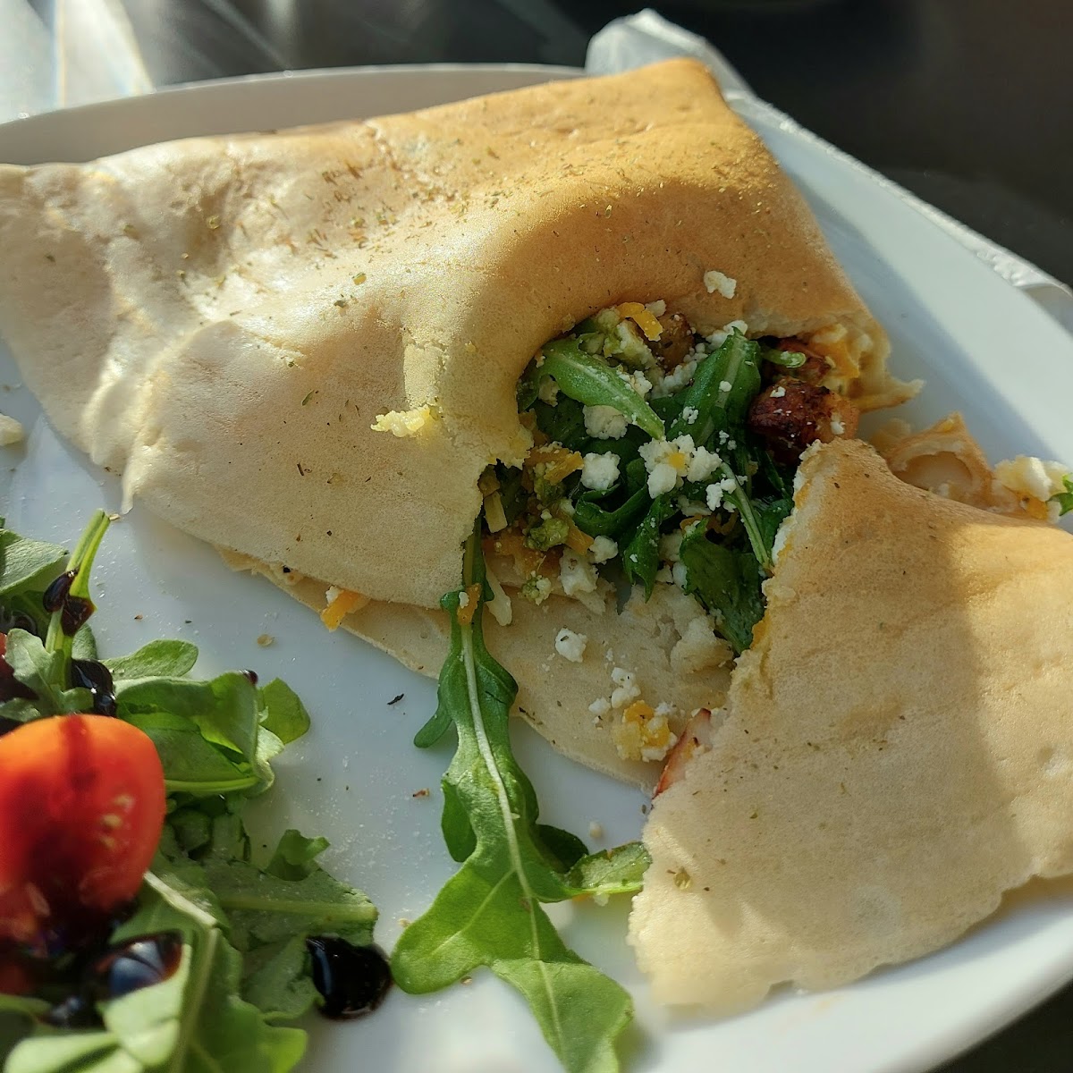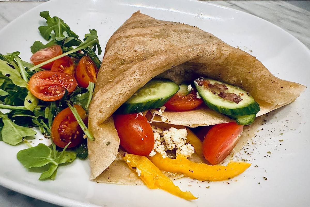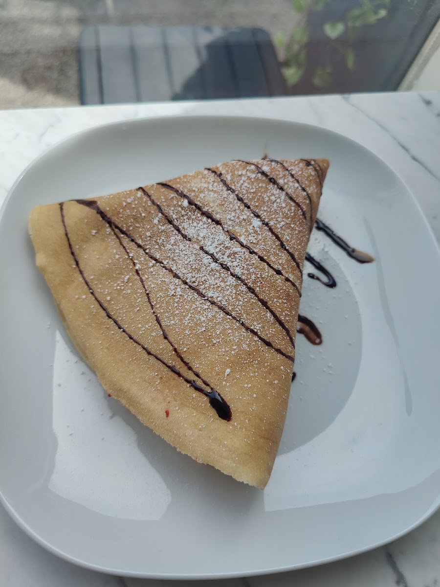 Canela specializes in crepes that are more substantial than your typical thin French style, often with crispy edges and a tender, fluffy center. The menu covers a range of Mediterranean-inspired fillings alongside classics, offering interesting combinations like the Myconos (feta, turkey, yogurt, potato sticks) and a Halva crepe filled with tahini, pistachio, and syrup. Sweet options include staples like banana Nutella or the Canela Honey with walnuts and cinnamon, catering to anyone looking for a comforting treat without overly fussy presentation.